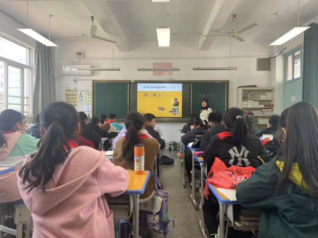 首先,第一节课谢静老师执教二年级的《树上树下》,根据二年级学生的认知规律,课中教师选用了视频、图片等不同表现形式的内容带领学生走进大树的世界,了解了不同树木的姿态特征,在此基础上创编了树上树下有趣的故事,有趣的故事极大地调动学生的学习兴趣,激发他们的创作欲。二年级的学生天真烂漫,活泼好动,一个个犹如春日里舞动的小精灵般活跃于课堂上。奇妙的创想和丰富色彩的巧妙叠加与碰撞,让学生体会了创编故事的乐趣,培养了想象力,感受自由创作的快乐,激发创造力以及自我表达展示的能力,培养了学生热爱校园生活的感情。